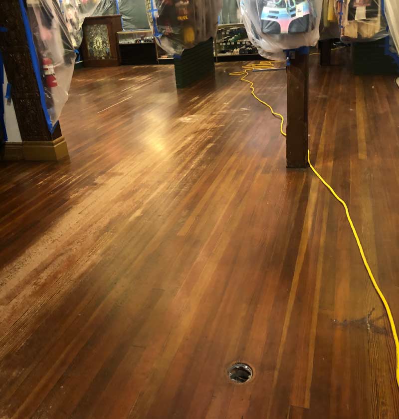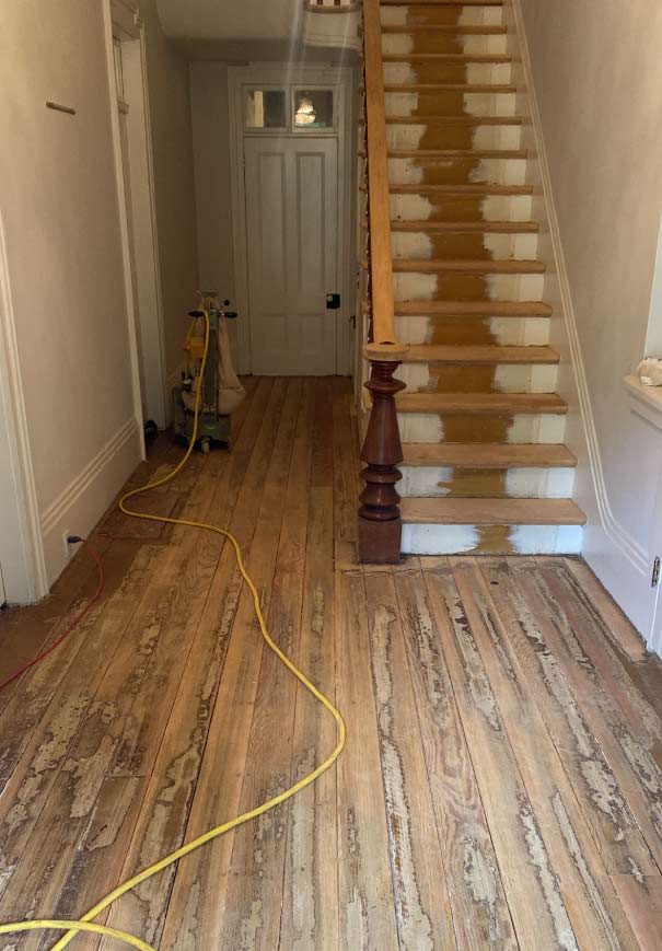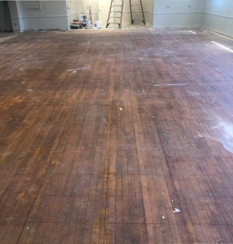 - Project Details: Found beneath 50 years of carpet, this original historic floor was heavily damaged by staples and glue.